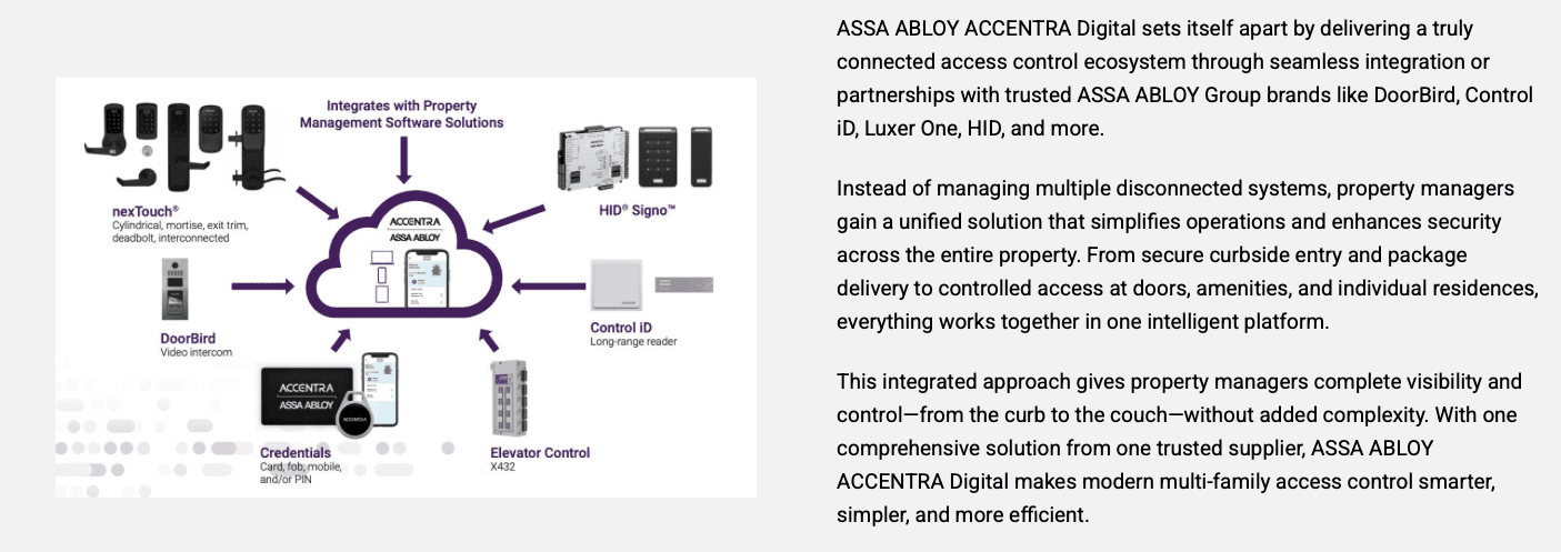 DoodBird Video Door Station Connect ACCENTRA: seamlessly manage your multi-tenant DOORBIRD door station through the ASSA Abloy ACCENTRA platform. This integration allows property managers to effortlessly control both access and intercom systems, providing tenants with a secure and convenient experience.